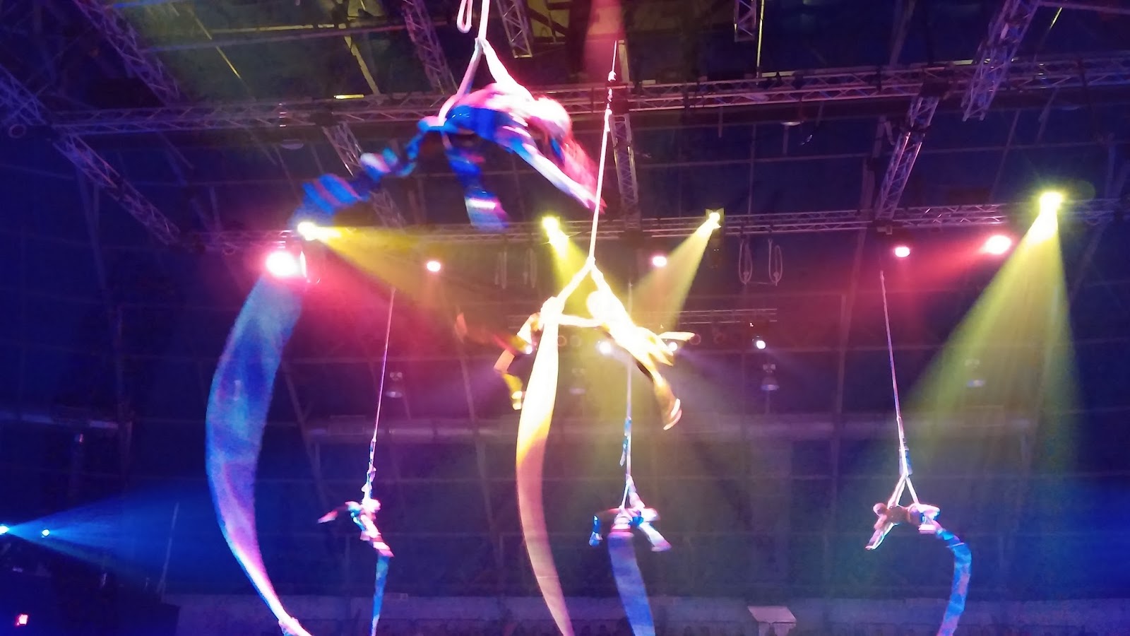 My pictures are not - because hello, dark theater, acrobats, no flash photography, etc...